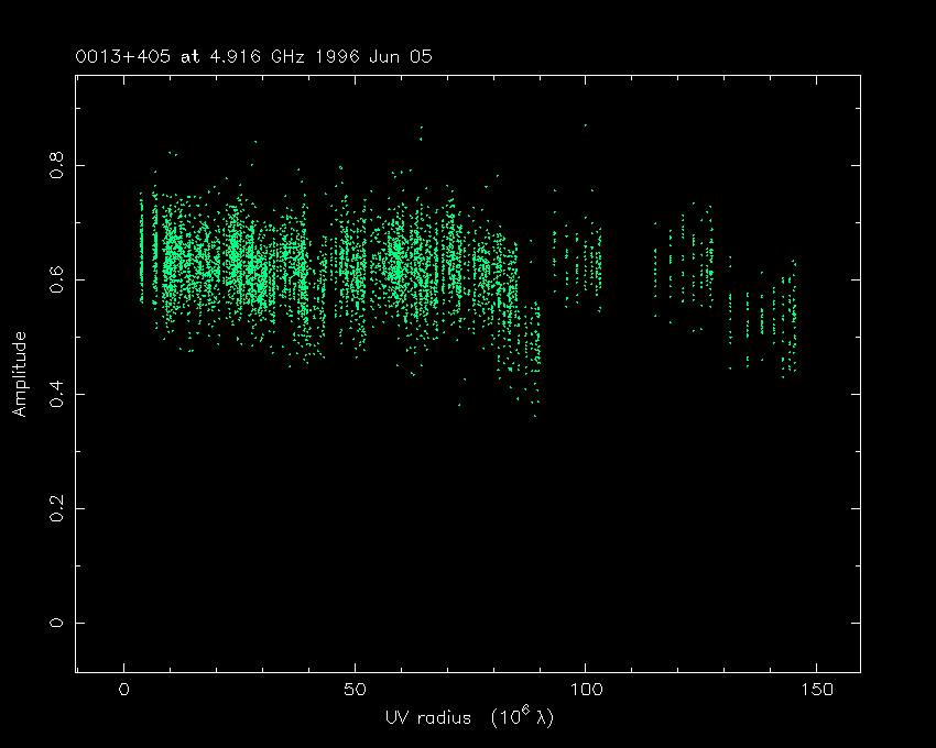 Correlated flux density (Jy) vs. projected baseline length plot