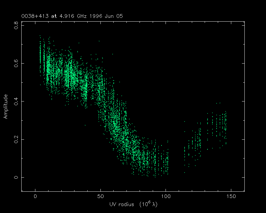 Correlated flux density (Jy) vs. projected baseline length plot