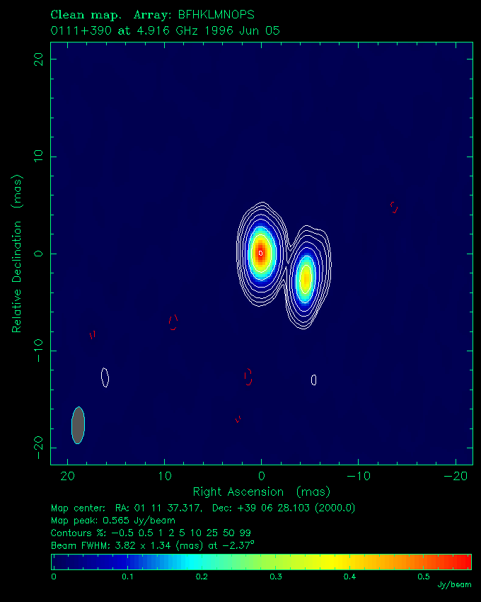 | flux density (Jy) | EW position (mas) | NS position (mas) | major axis (mas) | minor axis (mas) | position angle (°) |