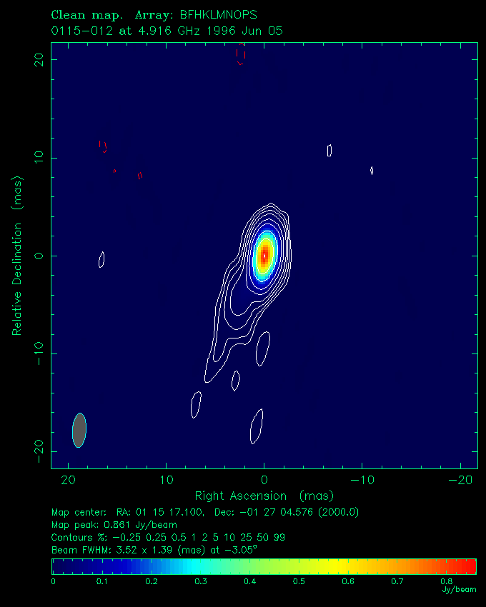 | 0112-017 | 1 h 15 m 17.0999 s | -1 ° 27 ´ 4.576 " | 1.6 Jy | quasar | 1.365 |