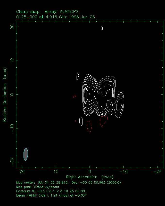 | 0122-003 | 1 h 25 m 28.8427 s | - 0 ° 5 ´ 55.963 " | 1.6 Jy | quasar | 1.070 |
