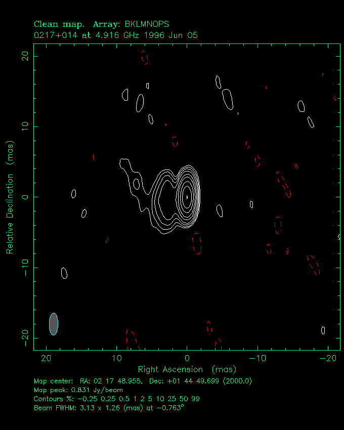 | 0215+015 | 2 h 17 m 48.9547 s | + 1 ° 44 ´ 49.699 " | 1.6 Jy | quasar | 1.715 |