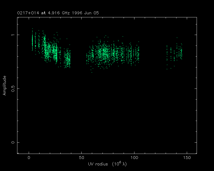 Correlated flux density (Jy) vs. projected baseline length plot