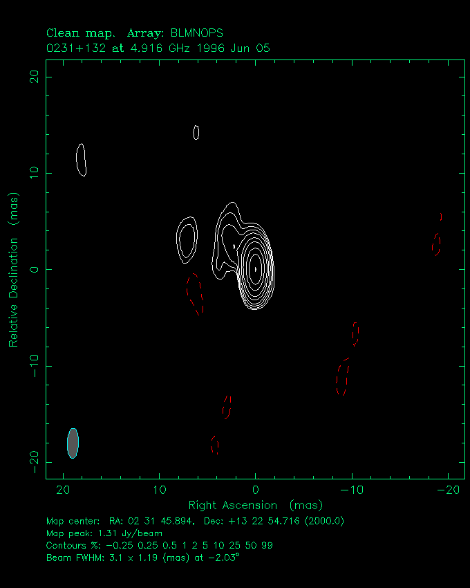 | 0229+131 | 2 h 31 m 45.8940 s | + 13 ° 22 ´ 54.716 " | 2.4 Jy | quasar | 2.065 |