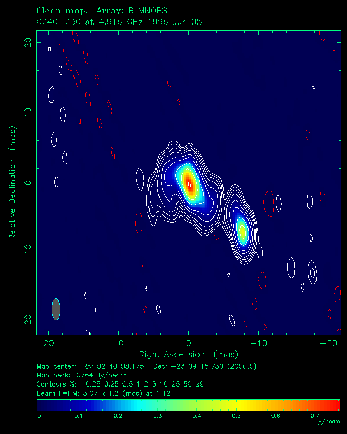| 0237-233 | 2 h 40 m 8.1745 s | -23 ° 9 ´ 15.730 " | 3.6 Jy | quasar | 2.225 |