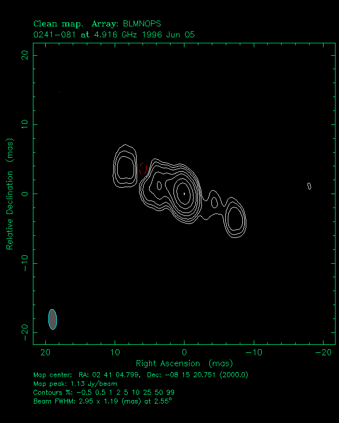 | flux density (Jy) | EW position (mas) | NS position (mas) | major axis (mas) | minor axis (mas) | position angle (°) |