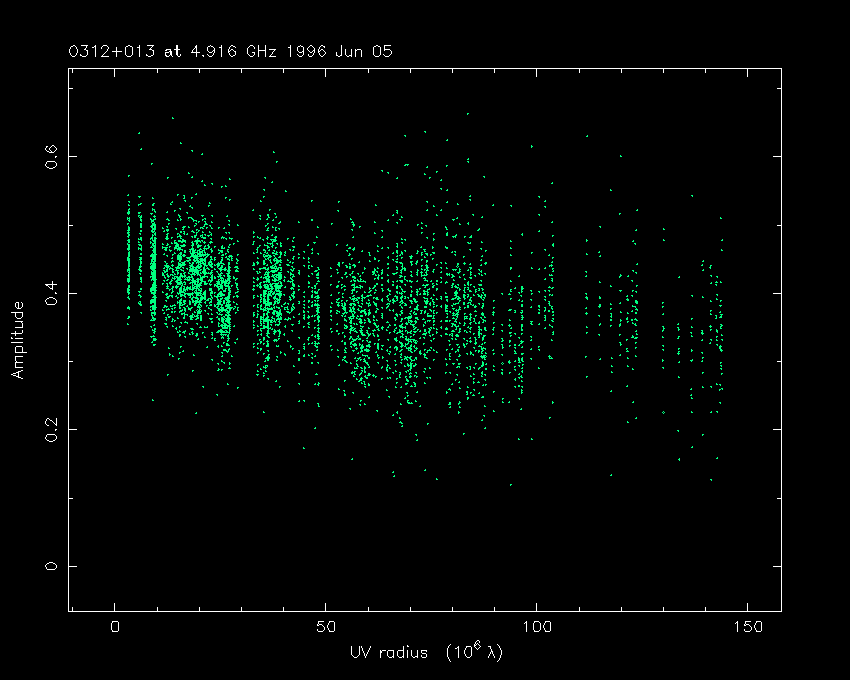 Correlated flux density (Jy) vs. projected baseline length plot