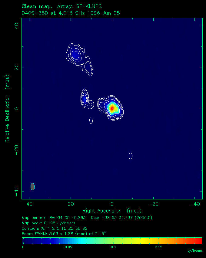 | 0402+379 | 4 h 5 m 49.2634 s | + 38 ° 3 ´ 32.237 " | 0.9 Jy | galaxy | 0.055 |