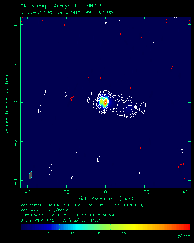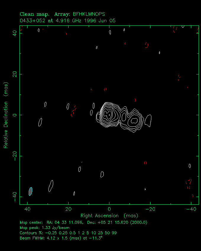 | flux density (Jy) | EW position (mas) | NS position (mas) | major axis (mas) | minor axis (mas) | position angle (°) |