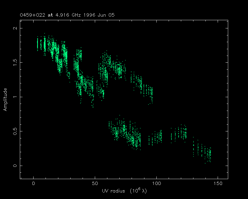 Correlated flux density (Jy) vs. projected baseline length plot