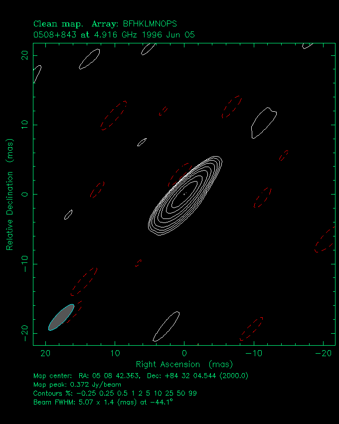 | flux density (Jy) | EW position (mas) | NS position (mas) | major axis (mas) | minor axis (mas) | position angle (°) |