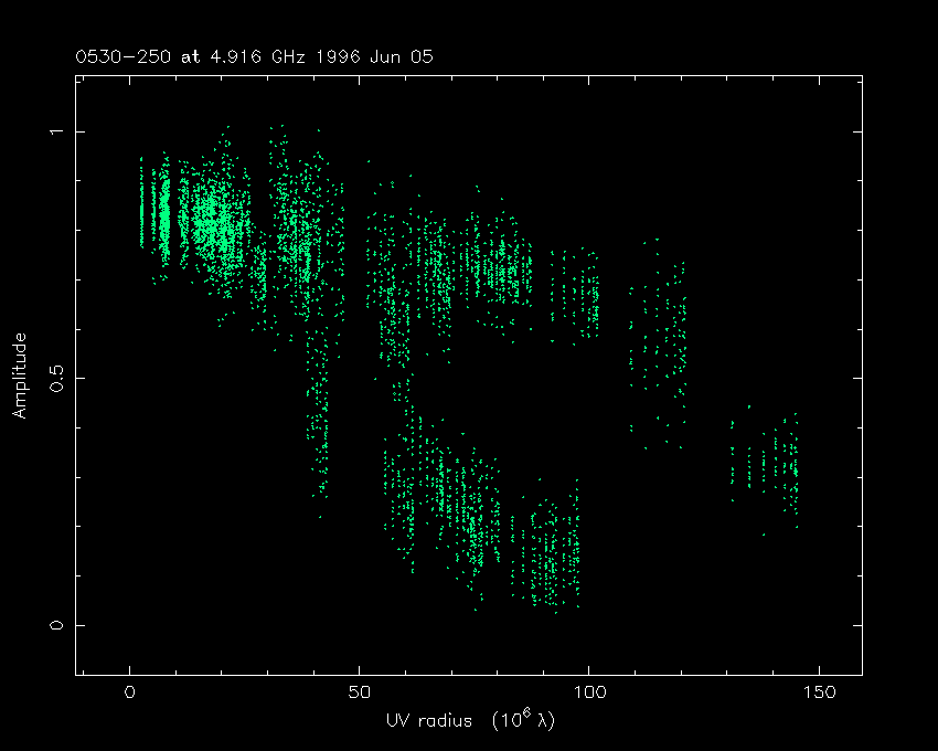 Correlated flux density (Jy) vs. projected baseline length plot