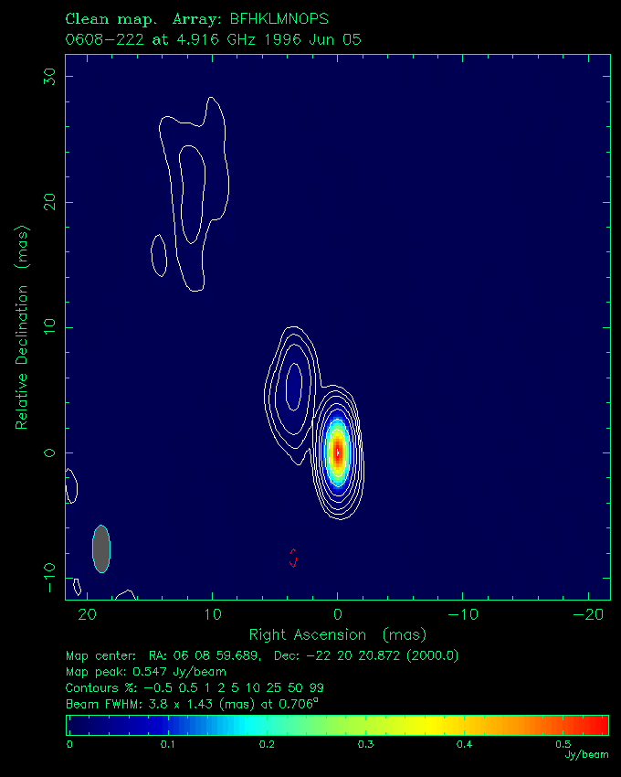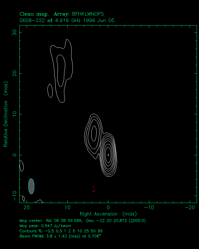 | 0606-223 | 6 h 8 m 59.687 s * | -22 ° 20 ´ 20.95 " | 0.7 Jy | quasar | 1.926 |