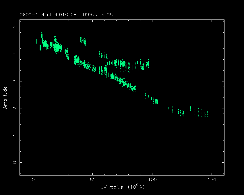 Correlated flux density (Jy) vs. projected baseline length plot