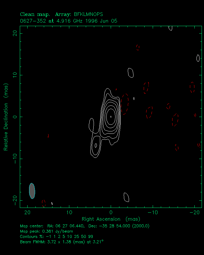 | 0625-354 | 6 h 27 m 6.728 s * | -35 ° 29 ´ 15.32 " | 2.2 Jy | galaxy | 0.055 |