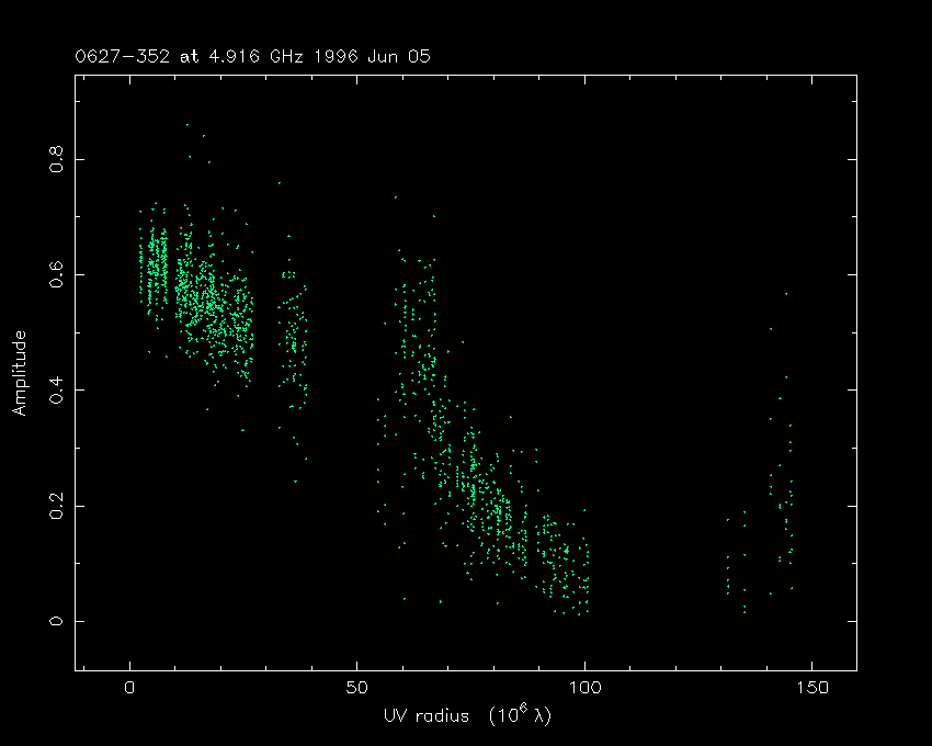 Correlated flux density (Jy) vs. projected baseline length plot