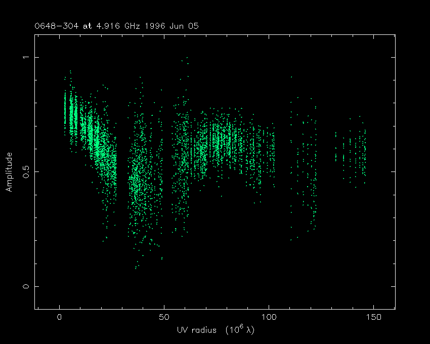 Correlated flux density (Jy) vs. projected baseline length plot