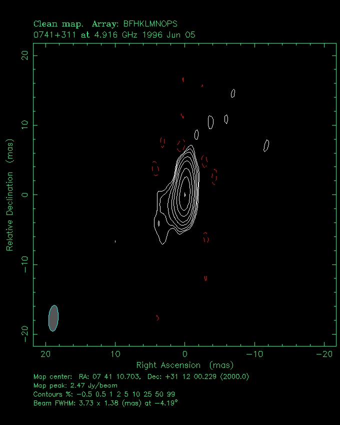 | 0738+313 | 7 h 41 m 10.7033 s | + 31 ° 12 ´ 0.229 " | 3.4 Jy | quasar | 0.630 |