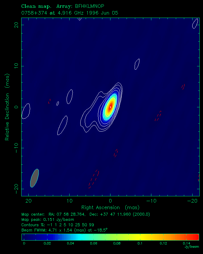 | flux density (Jy) | EW position (mas) | NS position (mas) | major axis (mas) | minor axis (mas) | position angle (°) |
