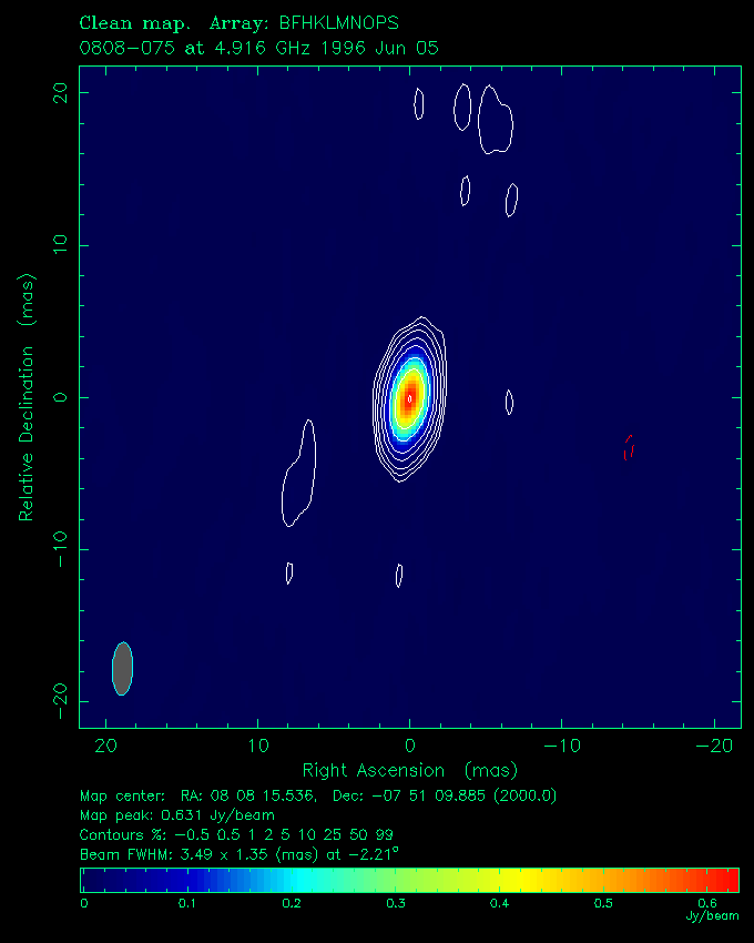 | 0805-077 | 8 h 8 m 15.5360 s | -7 ° 51 ´ 9.885 " | 1.6 Jy | quasar | 1.837 |