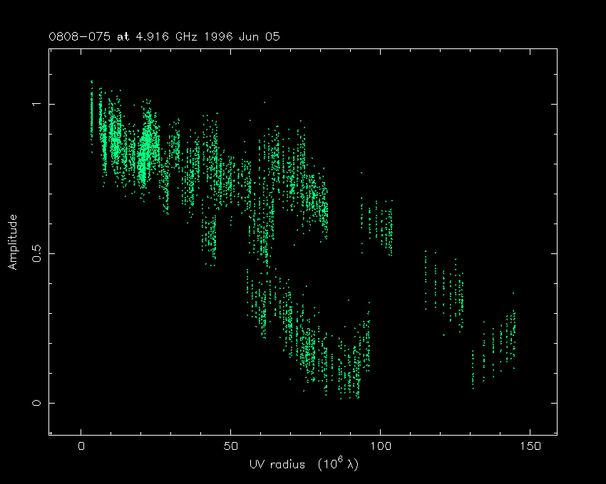 Correlated flux density (Jy) vs. projected baseline length plot