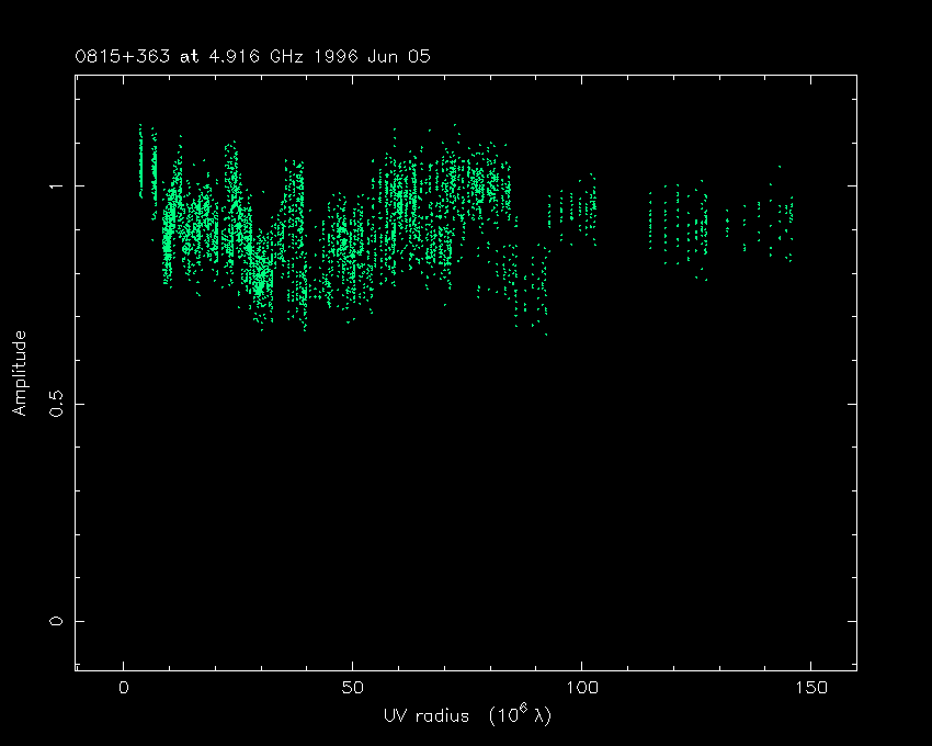Correlated flux density (Jy) vs. projected baseline length plot