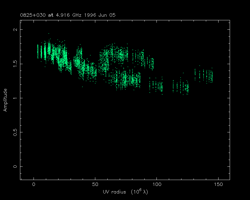 Correlated flux density (Jy) vs. projected baseline length plot