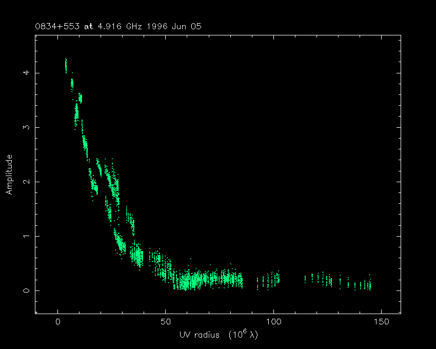 Correlated flux density (Jy) vs. projected baseline length plot