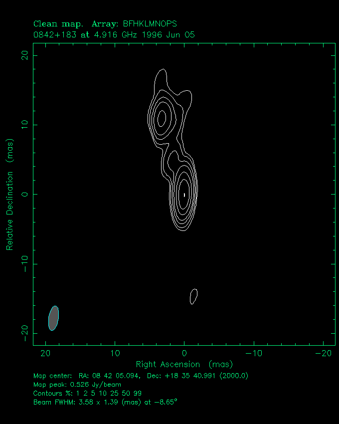 | 0839+187 | 8 h 42 m 5.0941 s | + 18 ° 35 ´ 40.991 " | 1.0 Jy | quasar | 1.272 |
