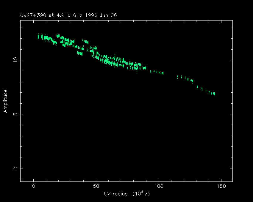 Correlated flux density (Jy) vs. projected baseline length plot