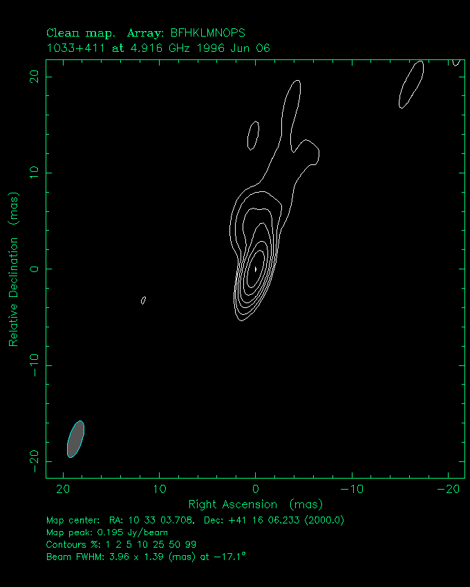 | 1030+415 | 10 h 33 m 3.7079 s | + 41 ° 16 ´ 6.233 " | 0.3 Jy | quasar | 1.120 |