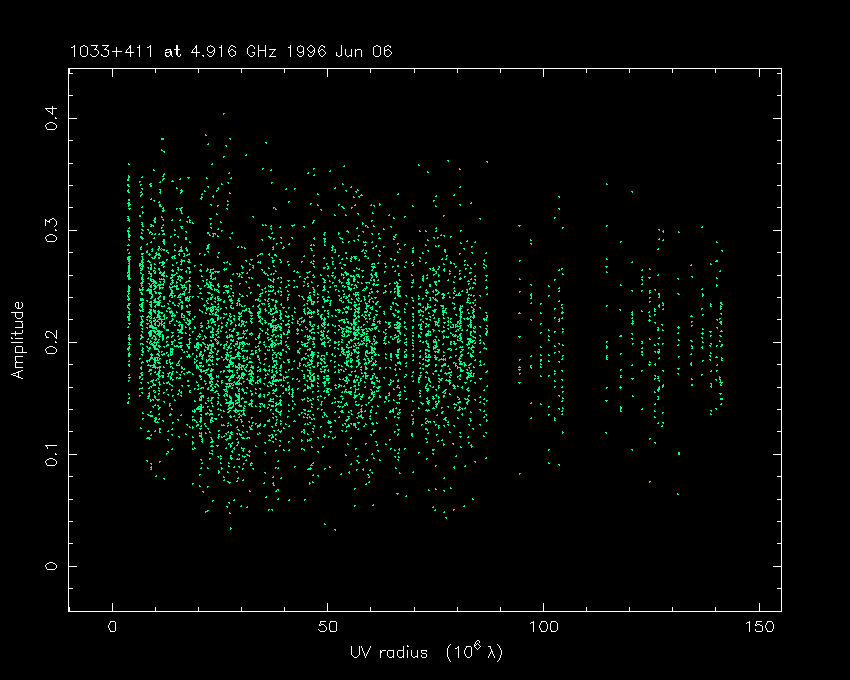 Correlated flux density (Jy) vs. projected baseline length plot