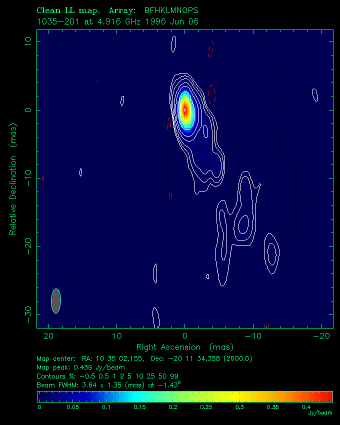 | flux density (Jy) | EW position (mas) | NS position (mas) | major axis (mas) | minor axis (mas) | position angle (°) |