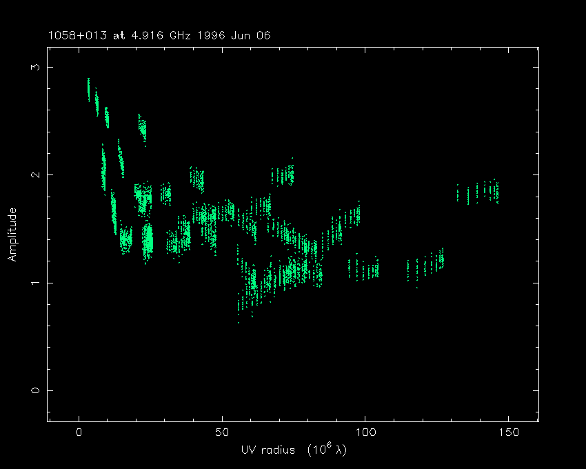 Correlated flux density (Jy) vs. projected baseline length plot
