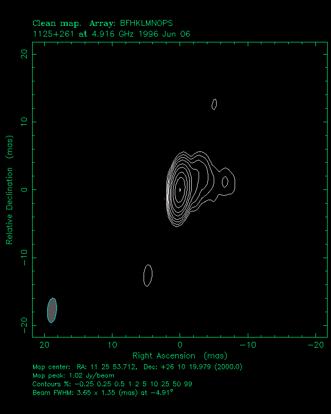 | 1123+264 | 11 h 25 m 53.7119 s | + 26 ° 10 ´ 19.979 " | 1.1 Jy | quasar | 2.341 |