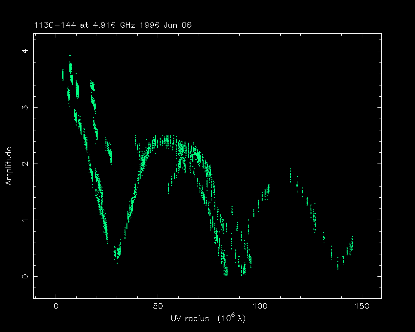 Correlated flux density (Jy) vs. projected baseline length plot