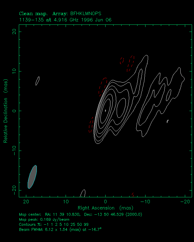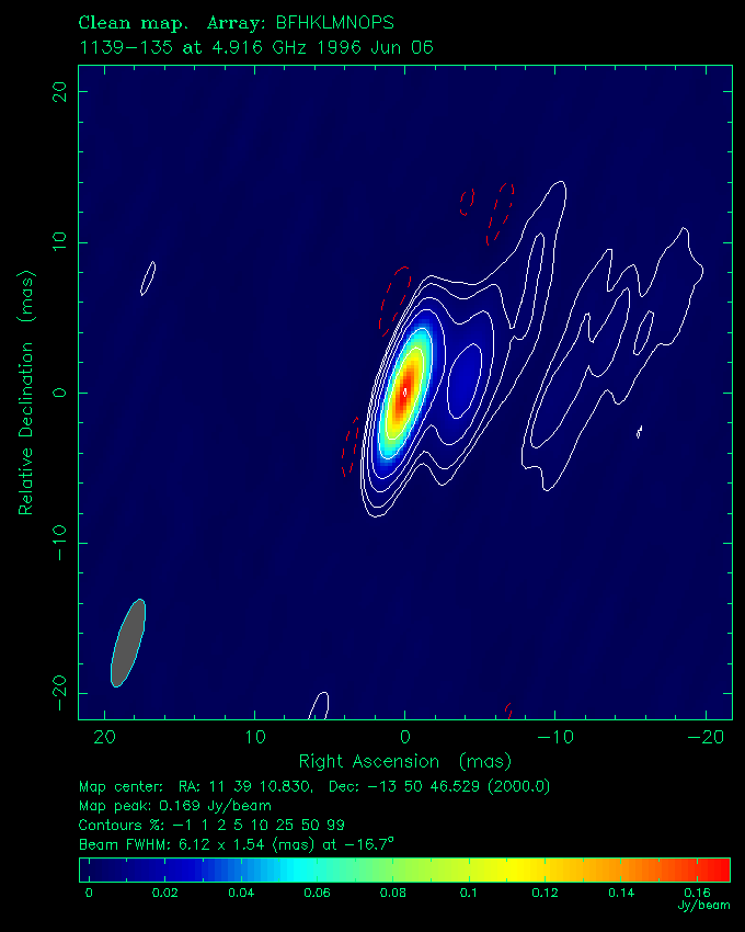 | 1136-135 | 11 h 39 m 10.703 s * | -13 ° 50 ´ 43.64 " | 1.8 Jy | quasar | 0.554 |
