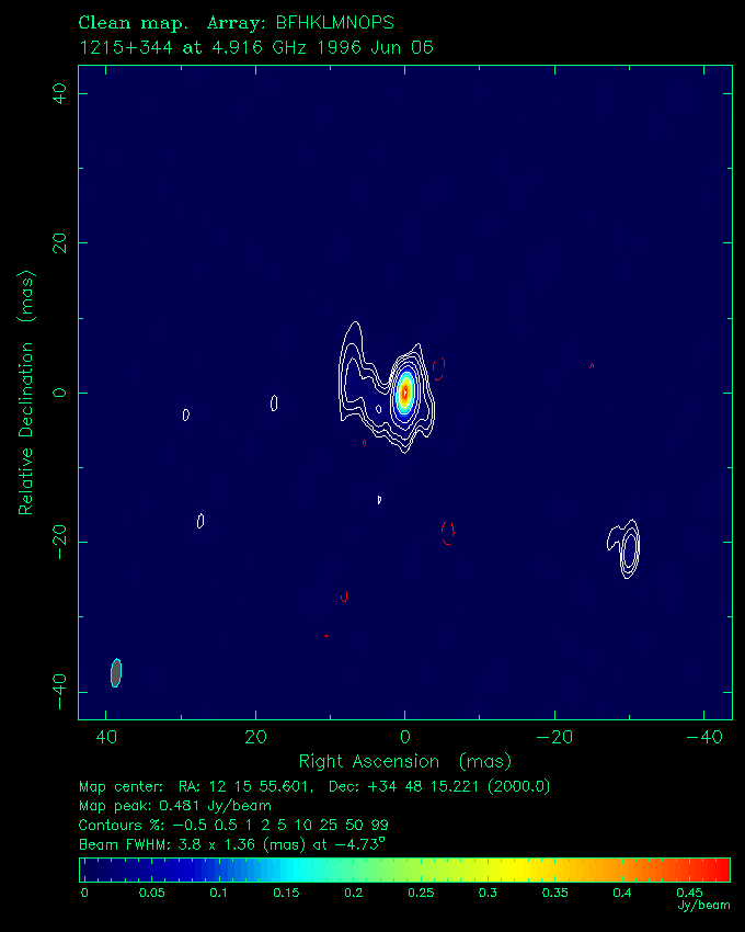 | flux density (Jy) | EW position (mas) | NS position (mas) | major axis (mas) | minor axis (mas) | position angle (°) |