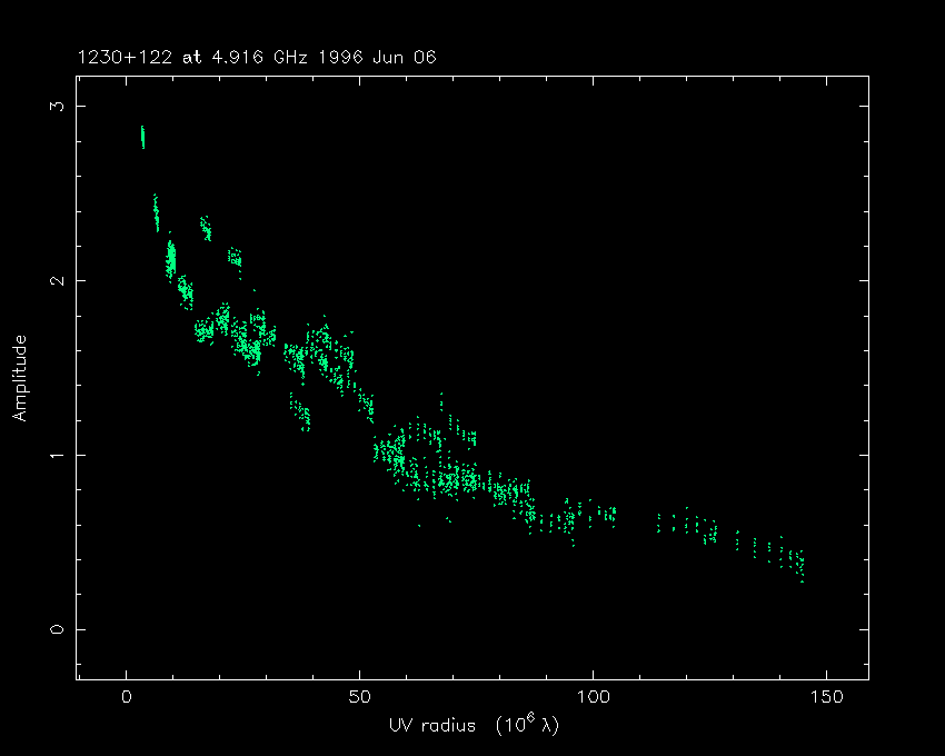 Correlated flux density (Jy) vs. projected baseline length plot