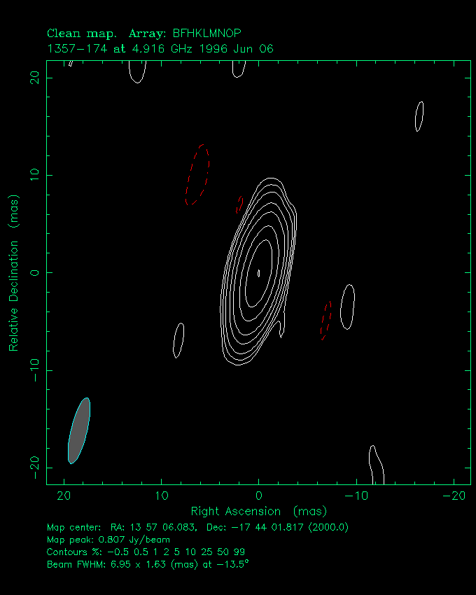 | 1354-174 | 13 h 57 m 6.074 s * | -17 ° 44 ´ 1.91 " | 1.1 Jy | quasar | 3.147 |