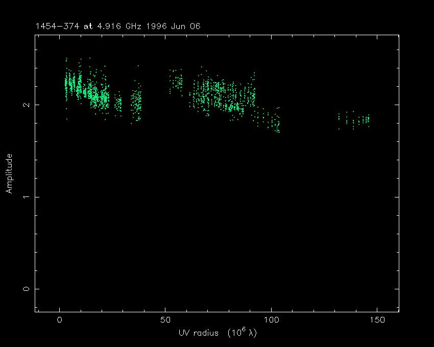 Correlated flux density (Jy) vs. projected baseline length plot