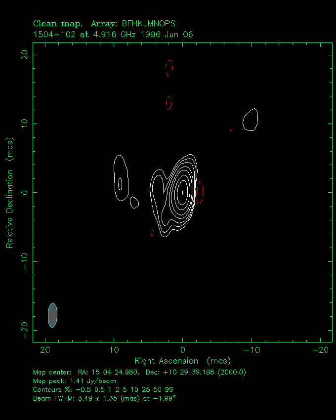 | 1502+106 | 15 h 4 m 24.9797 s | + 10 ° 29 ´ 39.198 " | 1.8 Jy | quasar | 1.833 |