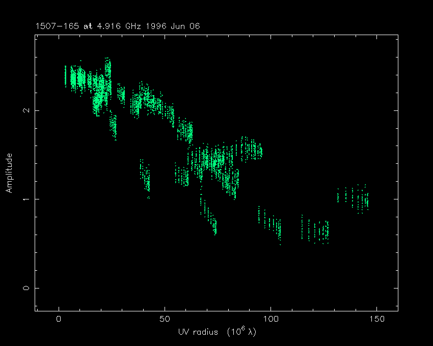 Correlated flux density (Jy) vs. projected baseline length plot