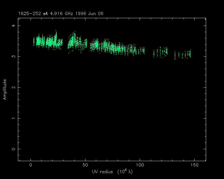 Correlated flux density (Jy) vs. projected baseline length plot