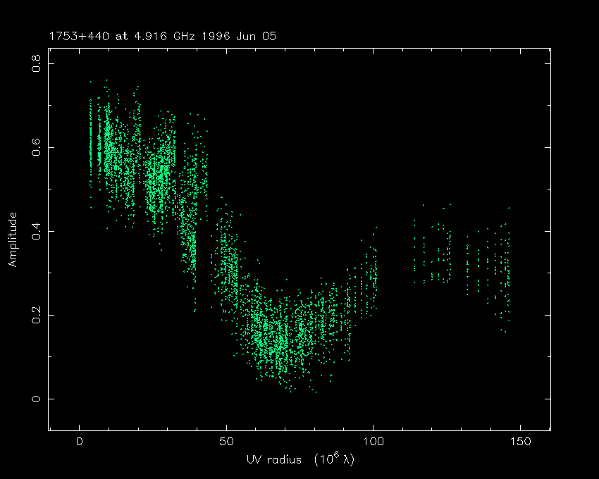 Correlated flux density (Jy) vs. projected baseline length plot