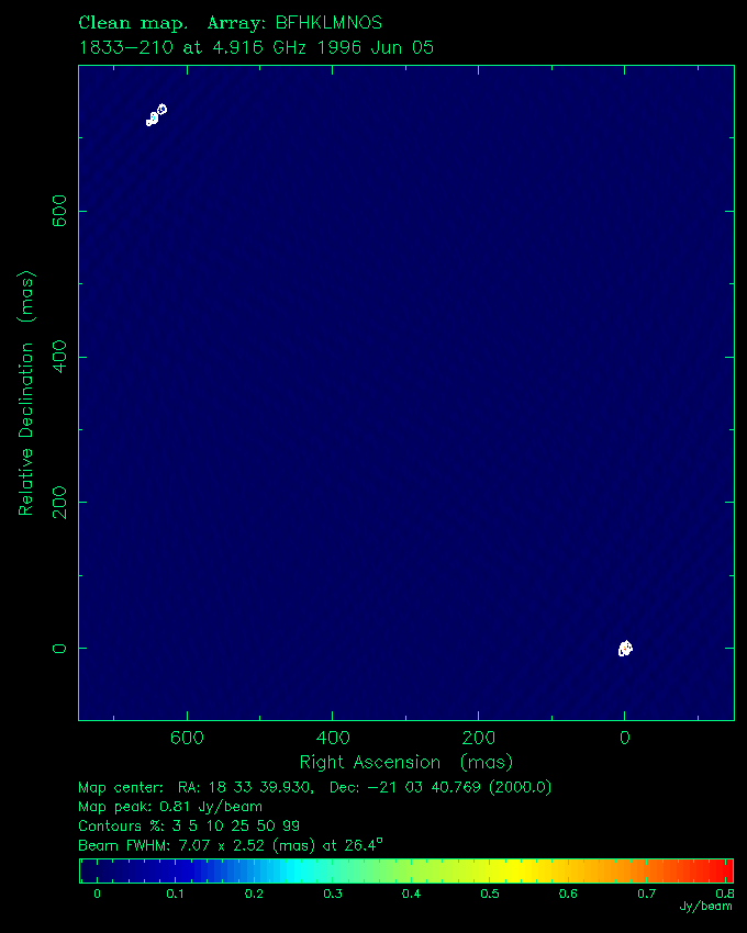 | 1830-211 | 18 h 33 m 39.886 s * | -21 ° 3 ´ 40.57 " | 7.9 Jy | quasar | 2.507 |