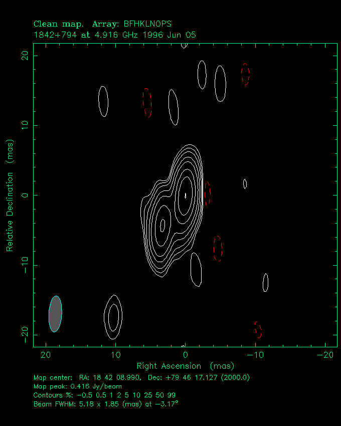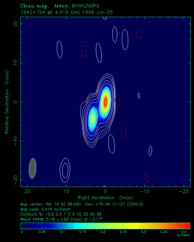 | flux density (Jy) | EW position (mas) | NS position (mas) | major axis (mas) | minor axis (mas) | position angle (°) |