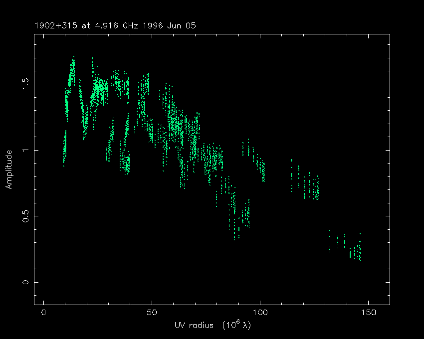 Correlated flux density (Jy) vs. projected baseline length plot