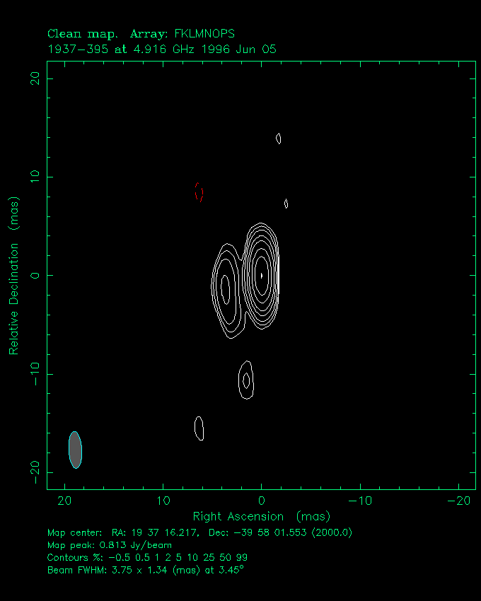 | 1933-400 | 19 h 37 m 16.2174 s | -39 ° 58 ´ 1.553 " | 1.1 Jy | quasar | 0.965 |