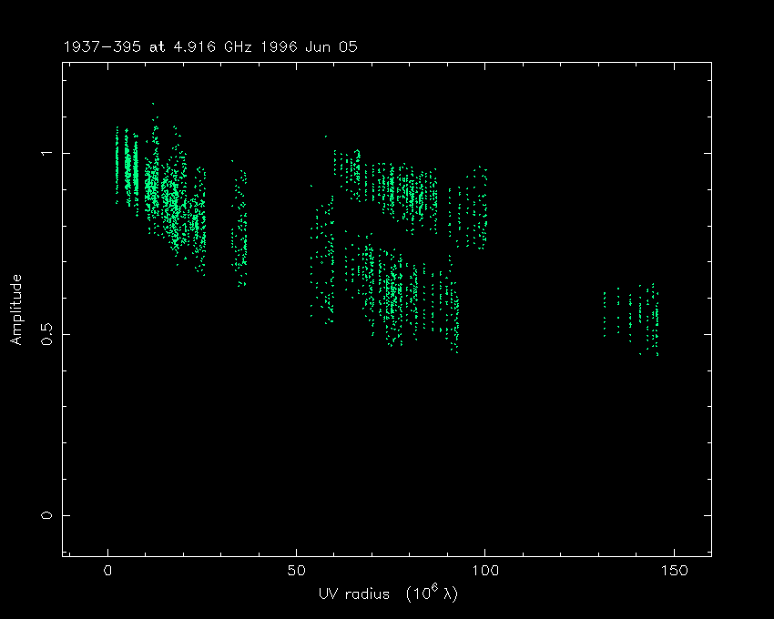 Correlated flux density (Jy) vs. projected baseline length plot